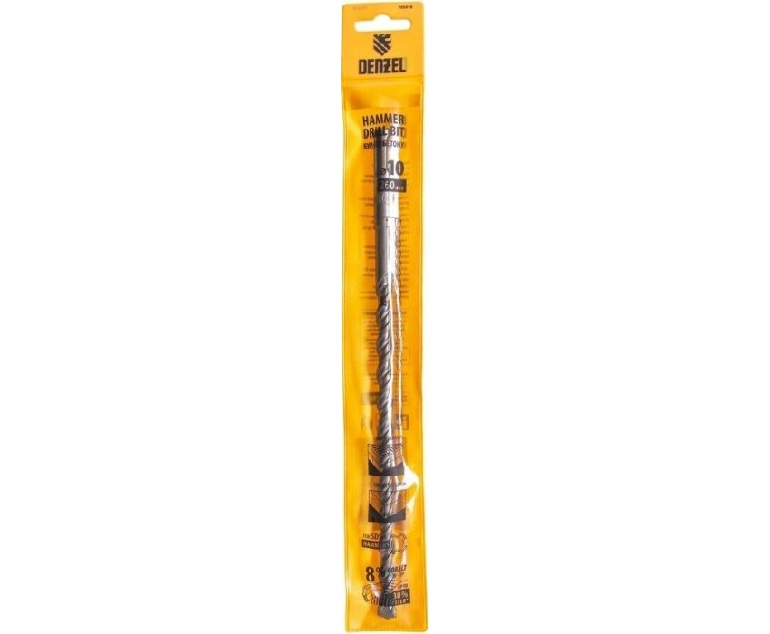 Бур по бетону Denzel арт. 705018 с хвостовиком SDS PLUS и двойной спиралью предназначен для сверления отверстий в бетоне, кирпиче и камне. Он используется в качестве оснастки для перфораторов с патроном SDS Plus. Бур оптимален для проведения строительных, ремонтных, монтажных работ.ПреимуществаВысокий ресурс — режущая твердосплавная пластина из стали ВК8 твердостью 80-90 HRC с W-образной заточкой способна сверлить отверстия до 30% быстрее, в том числе при работе с камнем.Прочность и износостойкость — рабочая часть из легированной стали 40Х выдерживает интенсивные и длительные ударные нагрузки, а также делает бур самым высокопроизводительным среди аналогов средней цены.Двойная спираль и канавка с дополнительным желобом — за счет более эффективного отвода шлама рабочая часть не перегревается, что позволяет продлить срок службы бура.Удобная упаковка с европодвесом — оснастку можно разместить на стенде.