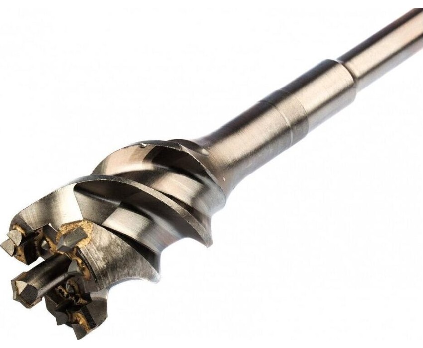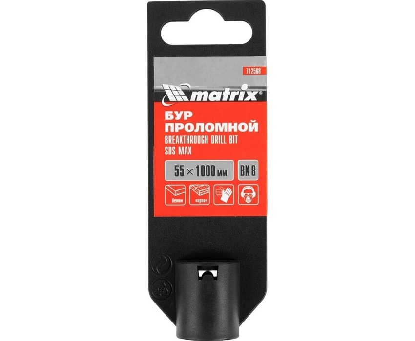 Проломной бур Matrix 712568 с хвостовиком SDS MAX позволяет получать сквозные отверстия диаметром 5,5 см и длиной 100 см в стенах из кирпича и бетона, полах, перекрытиях. Применяется совместно с высокомощными перфораторами SDS Max. Оптимален для прокладки газо- и водопровода, электрических коммуникаций, магистралей кондиционеров.ПреимуществаМаксимальная прочность и долговечность — тело бура изготовлено из легированной стали 40Х, режущая пластина выполнена из сверхтвердого сплава ВК8 80-90 HRC с добавлением кобальта.Эффективная работа — особая конструкция рабочей головки позволяет проходить армированный бетон без риска деформации бура.Высокое качество сверления — цельная конструкция оснастки позволяет минимизировать радиальное и торцевое биение в процессе работы, что исключает отклонение бура от заданной оси.Увеличенная производительность — глубокие спиральные канавки эффективно отводят шлам, обеспечивая высокую скорость работы независимо от глубины сверления.Глубокие спиральные канавки эффективно отводят шлам, обеспечивая высокую скорость работы независимо от глубины сверления.