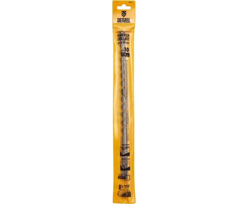 Бур DENZEL Бур по бетону, двойная спираль, три пылеотводящие кромки, 10 x 310 мм 705019