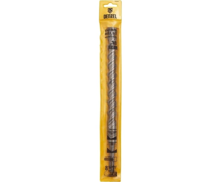 Бур DENZEL Бур по бетону, двойная спираль, три пылеотводящие кромки, 18 x 310 мм 705044