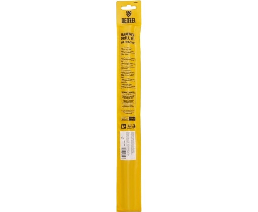 Бур по бетону Denzel арт. 705044 с хвостовиком SDS PLUS и двойной спиралью предназначен для сверления отверстий в бетоне, кирпиче и камне. Он используется в качестве оснастки для перфораторов с патроном SDS Plus. Бур оптимален для проведения строительных, ремонтных, монтажных работ.ПреимуществаВысокий ресурс — режущая твердосплавная пластина из стали ВК8 твердостью 80-90 HRC с W-образной заточкой способна сверлить отверстия до 30% быстрее, в том числе при работе с камнем.Прочность и износостойкость — рабочая часть из легированной стали 40Х выдерживает интенсивные и длительные ударные нагрузки, а также делает бур самым высокопроизводительным среди аналогов средней цены.Двойная спираль и канавка с дополнительным желобом — за счет более эффективного отвода шлама рабочая часть не перегревается, что позволяет продлить срок службы бура.Удобная упаковка с европодвесом — оснастку можно разместить на стенде.