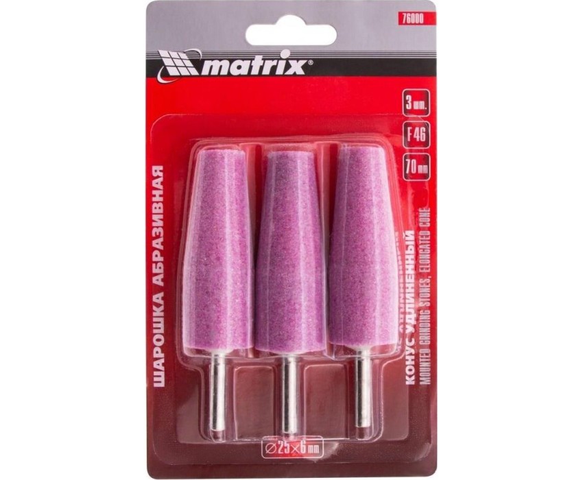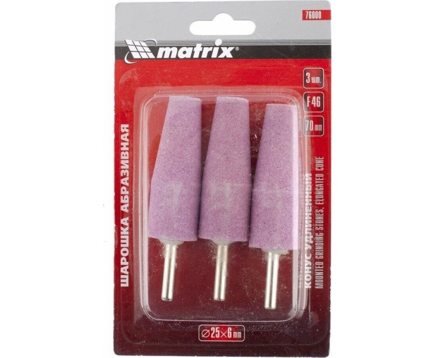 Шарошка MATRIX Шарошка абразивная, конус удлиненный, 25 х 70 x 6 мм, F46, 3 шт 76000