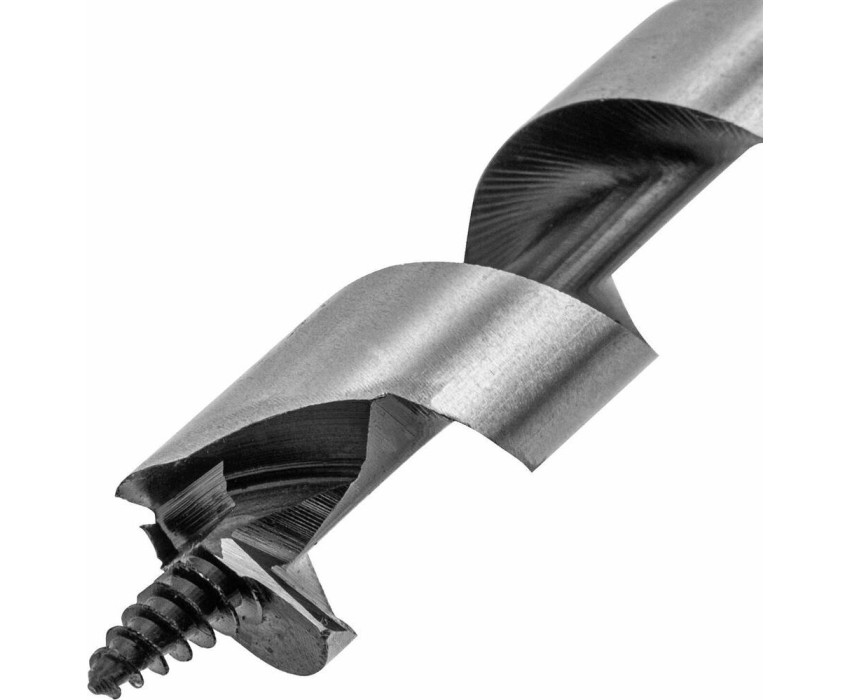 Шнековое сверло по дереву Matrix 70107 размером 18 х 230 мм, с 6-гранным хвостовиком, предназначено для получения глубоких отверстий. Подходит для работы как с мягкими, так и с твердыми породами древесины. Конструкция сверла рассчитана на интенсивное использование с высокими нагрузками в ходе строительных, ремонтных и отделочных работ.ПреимуществаПрочность и износостойкость — сверло изготовлено из инструментальной стали, а режущая часть закалена до твердости 40 HRC.Высокое качество выполняемых работ — шнек отшлифован до зеркального блеска, что позволяет получать гладкие и ровные отверстия.Глубокое сверление — массивная спираль обеспечивает эффективный отвод стружки.Удобная эксплуатация — центрирующее сверло уменьшает осевую нагрузку, облегчая засверливание и предотвращая смещение оснастки.Шестигранный хвостовик — сверло не проворачивается в патроне дрели.