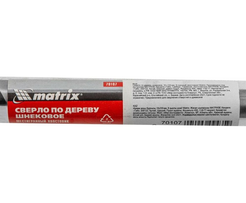 Сверло MATRIX Сверло по дереву шнековое, 18 х 230 мм, шестигранный хвостовик 70107