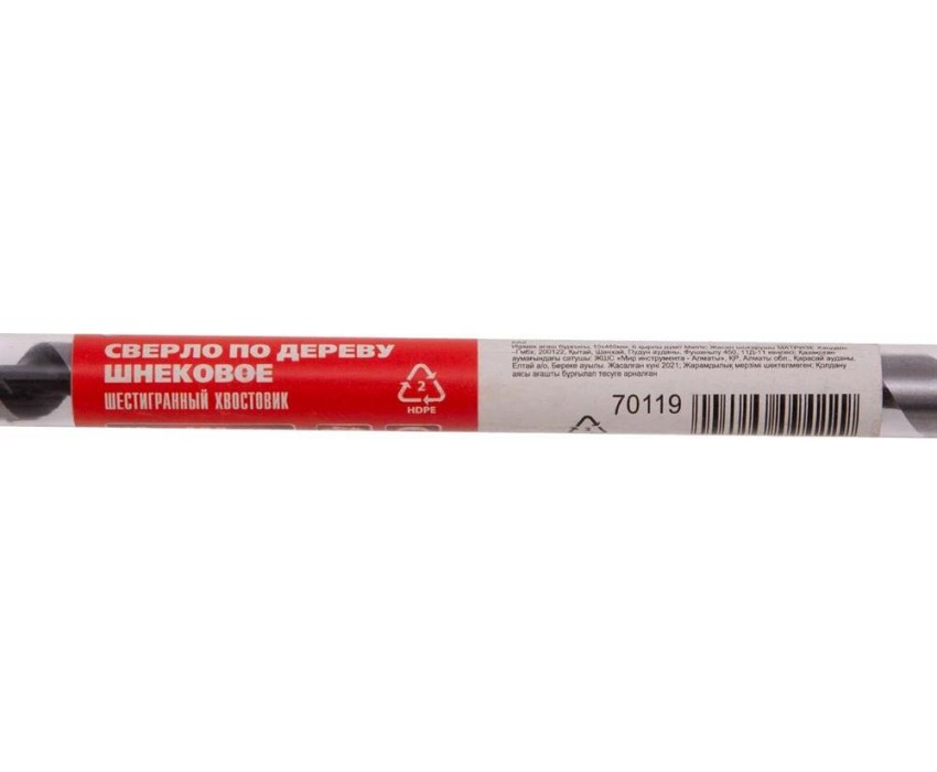 Шнековое сверло по дереву Matrix 70119 размером 10 х 460 мм, с 6-гранным хвостовиком, предназначено для получения глубоких отверстий. Подходит для работы как с мягкими, так и с твердыми породами древесины. Конструкция сверла рассчитана на интенсивное использование с высокими нагрузками в ходе строительных, ремонтных и отделочных работ.ПреимуществаПрочность и износостойкость — сверло изготовлено из инструментальной стали, а режущая часть закалена до твердости 40 HRC.Высокое качество выполняемых работ — шнек отшлифован до зеркального блеска, что позволяет получать гладкие и ровные отверстия.Глубокое сверление — массивная спираль обеспечивает эффективный отвод стружки.Удобная эксплуатация — центрирующее сверло уменьшает осевую нагрузку, облегчая засверливание и предотвращая смещение оснастки.Шестигранный хвостовик — сверло не проворачивается в патроне дрели.