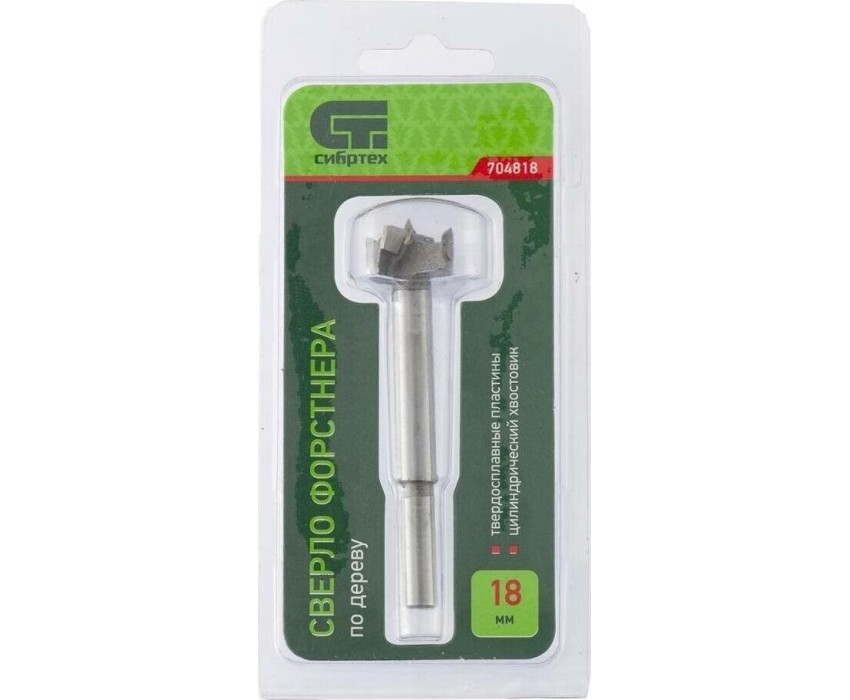 Сверло СИБРТЕХ Сверло Форстнера по дереву, 18 мм, цилиндрический хвостовик 704818