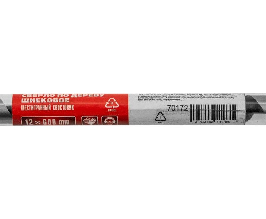 Шнековое сверло по дереву Matrix 70172 размером 12 х 600 мм, с 6-гранным хвостовиком, предназначено для получения глубоких отверстий. Подходит для работы как с мягкими, так и с твердыми породами древесины. Конструкция сверла рассчитана на интенсивное использование с высокими нагрузками в ходе строительных, ремонтных и отделочных работ.ПреимуществаПрочность и износостойкость — сверло изготовлено из инструментальной стали, а режущая часть закалена до твердости 40 HRC.Высокое качество выполняемых работ — шнек отшлифован до зеркального блеска, что позволяет получать гладкие и ровные отверстия.Глубокое сверление — массивная спираль обеспечивает эффективный отвод стружки.Удобная эксплуатация — центрирующее сверло уменьшает осевую нагрузку, облегчая засверливание и предотвращая смещение оснастки.Шестигранный хвостовик — сверло не проворачивается в патроне дрели.
