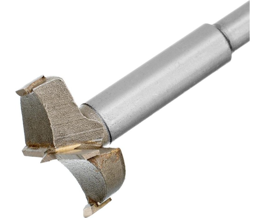 Сверло Форстнера по дереву Сибртех 704832 с цилиндрическим хвостовиком, используется для получения глухих отверстий диаметром 32 мм в древесине, ДСП, ДВП и других материалах. Благодаря продуманной конструкции инструмента стенки и дно отверстий получаются ровными и гладкими. Сверло применяют для производства мебели, а также отделочных работ.ПреимуществаСверло изготовлено из стали 45, поэтому устойчиво к механическим нагрузкам.Благодаря твердосплавным пластинам из сплава ВК8 твердостью 86-92 HRC инструмент характеризуется высокой производительностью и продолжительным ресурсом работоспособности.Центрирующее острие удерживает сверло на заданной оси, что облегчает засверливание и позволяет получить ровное отверстие.