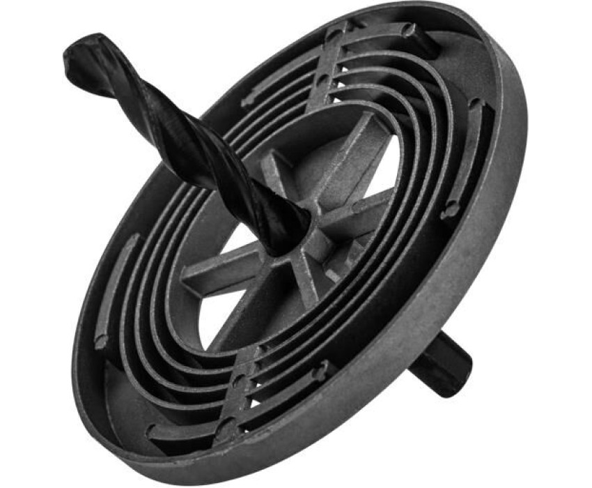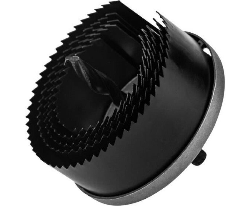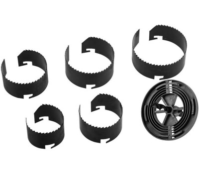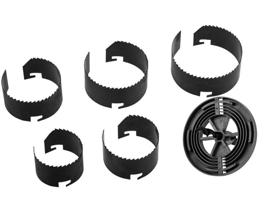 Кольцевая пила состоит из держателя и коронок диаметром 60, 67, 74, 81, 95 мм, позволяющих вырезать круглые отверстия глубиной до 1,5 дюйма в дереве, ДВП и ДСП. Пила применяется при проведении работ по выводу труб через перегородки, а также при установке осветительных систем, розеток и выключателей. Используется в качестве оснастки для ручных и электрических дрелей. Хвостовик – цилиндрический. Режущие полотна изготовлены из высокоуглеродистой марганцевой стали марки 65Г, поэтому характеризуются высокими показателями износостойкости и остроты режущей кромки. Инструмент комплектуется направляющим сверлом, облегчающим центровку отверстия. На корпус держателя нанесены обозначения диаметров, что упрощает установку коронок. По окончании работ все полотна вставляются в держатель, что обеспечивает удобство хранения. Комплектация: кольцевые пилы 60, 67, 74, 81, 95 мм, держатель, центрирующее сверло.