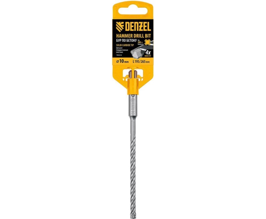 Бур DENZEL Бур по бетону, цельная крестовая пластина, 10x265 мм, SDS PLUS 705313