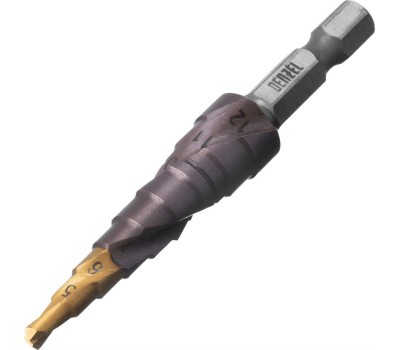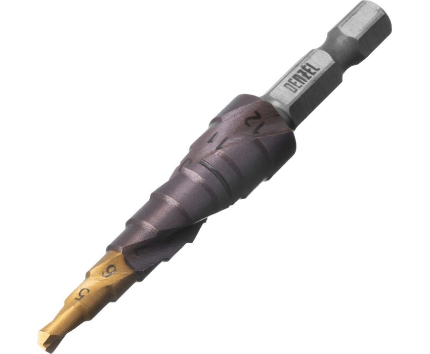 Сверло DENZEL Сверло ступенчатое 4-5-6-7-8-9-10-11-12 мм, Р6М5К5, 6-гр. хвостовик 723612