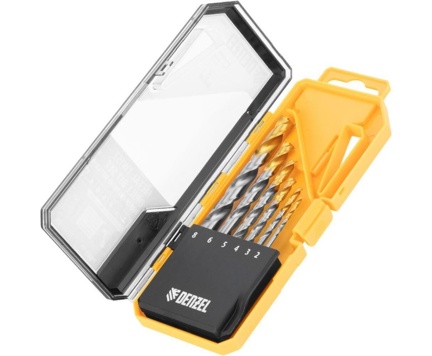Набор сверл DENZEL Набор сверл по металлу, 2-8мм, Р6М5-TiN, Golden Tip, 6 шт 723000