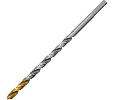 - Высокая производительность — поверхность сверла покрыта нитридом титана, что снижает трение о стенки отверстия и уменьшает нагрев, а также улучшает отвод стружки.