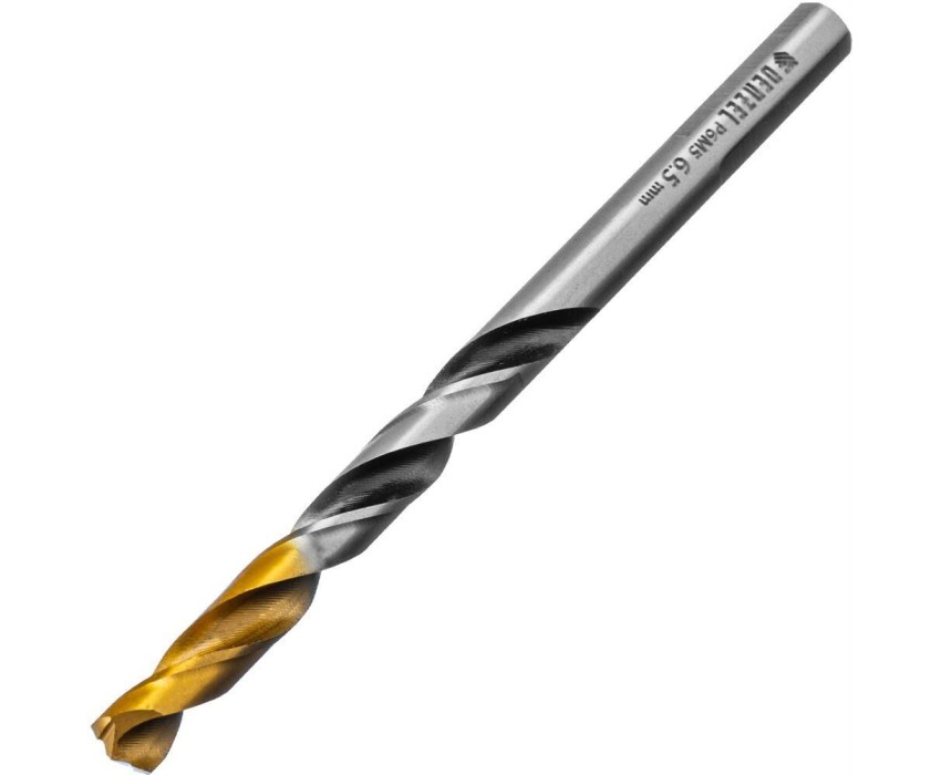 Сверло DENZEL Сверло спиральное по металлу 6,5 x 93мм, Р6М5, Golden Tip, многогранная заточка 718279