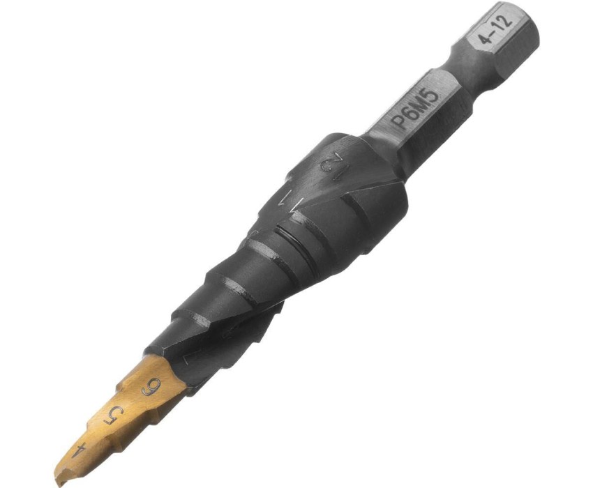 Сверло DENZEL Сверло ступенчатое 4-5-6-7-8-9-10-11-12 мм, Р6М5, 6-гр. хвостовик 723602