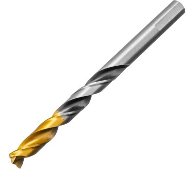 Сверло DENZEL Сверло спиральное по металлу 9 x 125мм, Р6М5, Golden Tip, многогранная заточка 718284