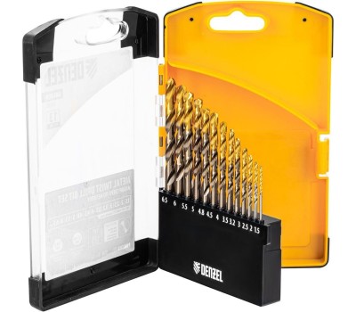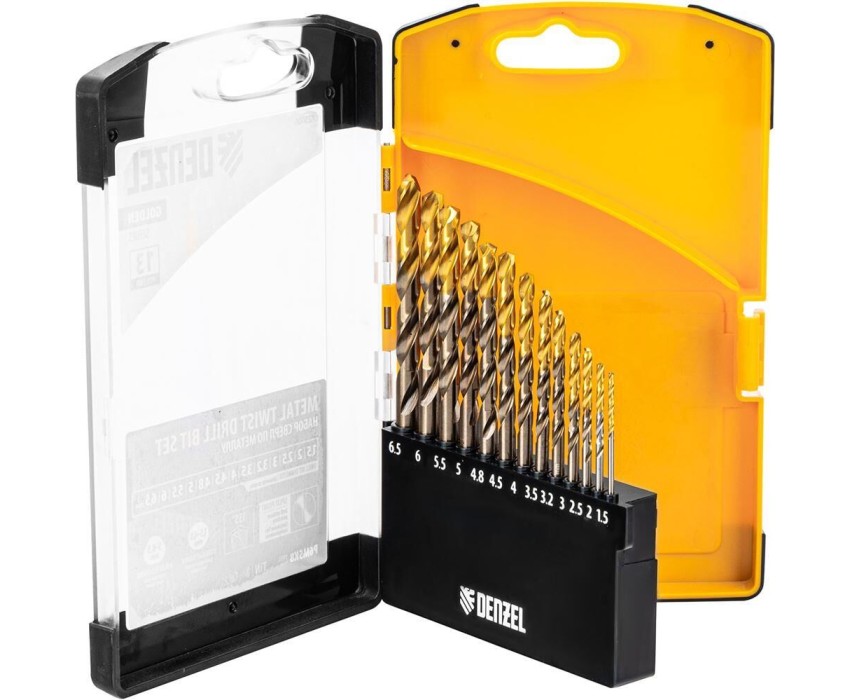 Набор сверл DENZEL Набор сверл по металлу, 1,5-6,5мм, Р6М5К8-TiN, Golden Tip, 13 шт 723006