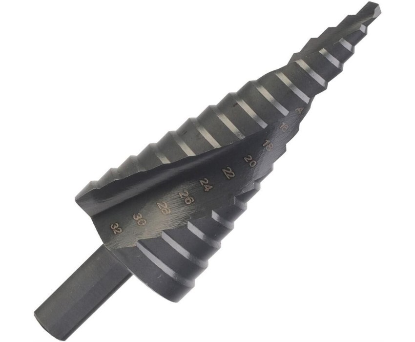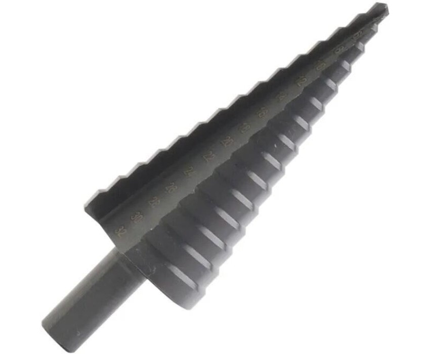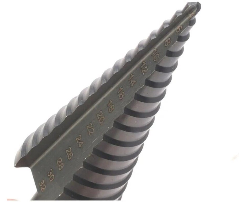 Ступенчатое сверло предназначено для сверления отверстий в профильных и листовых материалах из стали, цветных мелаллов и пластика толщиной до 5 мм.