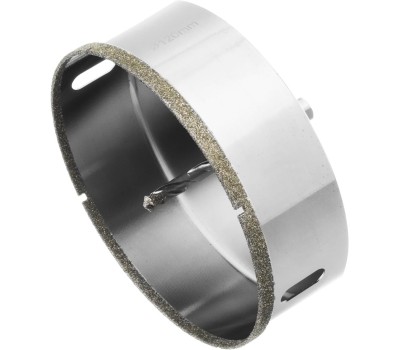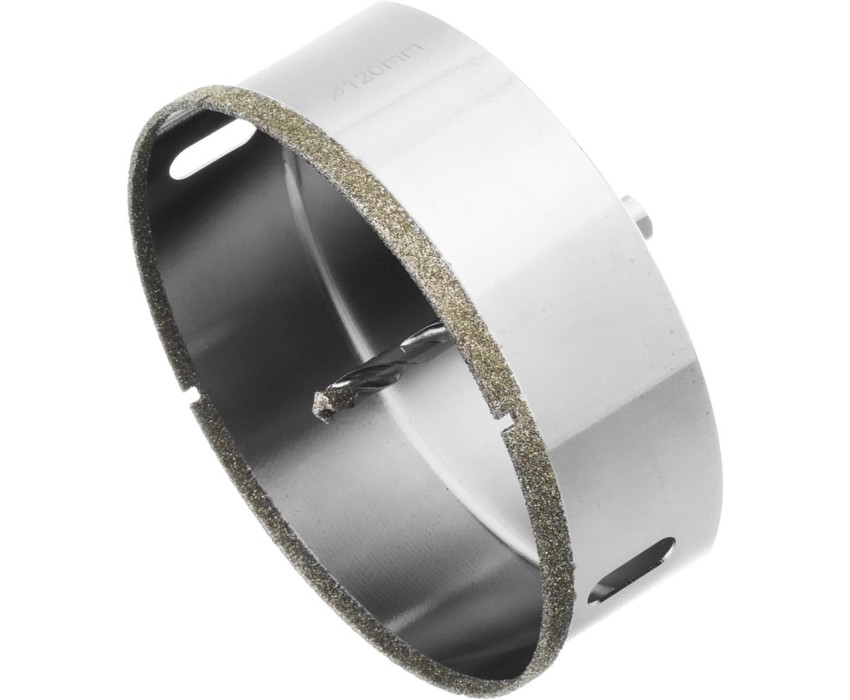Универсальное алмазное сверло по керамограниту Matrix 726963 размером 120 х 67 мм, с 3-гранным хвостовиком, применяется для получения отверстий в стекле, плитке, кафеле. За счет высокой концентрации алмазов в режущем слое оно легко справляется со сверлением керамогранита. Сверло рассчитано на профессиональное использование с дрелями и шуруповертами. Водяное охлаждение в процессе работы значительно повышает срок службы оснастки. Преимущества Высокий ресурс — сверло с усиленным корпусом и увеличенным алмазным слоем долго сохраняет рабочие свойства. Антикоррозионное покрытие — при мокром сверлении на сверле не образуется ржавчина. Легкое засверливание — благодаря центрирующему сверлу коронку не уводит в сторону. Надежная фиксация — трехгранный хвостовик не прокручивается в патроне дрели или шуруповерта.