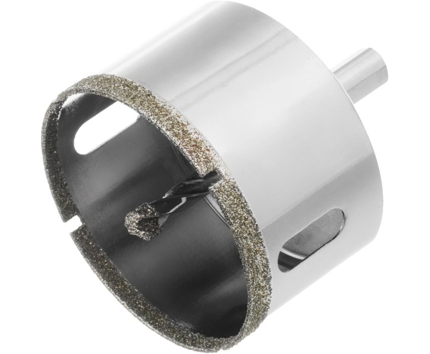 Универсальное алмазное сверло по керамограниту Matrix 726653 размером 65 х 67 мм, с 3-гранным хвостовиком, применяется для получения отверстий в стекле, плитке, кафеле. За счет высокой концентрации алмазов в режущем слое оно легко справляется со сверлением керамогранита. Сверло рассчитано на профессиональное использование с дрелями и шуруповертами. Водяное охлаждение в процессе работы значительно повышает срок службы оснастки. Преимущества Высокий ресурс — сверло с усиленным корпусом и увеличенным алмазным слоем долго сохраняет рабочие свойства. Антикоррозионное покрытие — при мокром сверлении на сверле не образуется ржавчина. Легкое засверливание — благодаря центрирующему сверлу коронку не уводит в сторону. Надежная фиксация — трехгранный хвостовик не прокручивается в патроне дрели или шуруповерта.