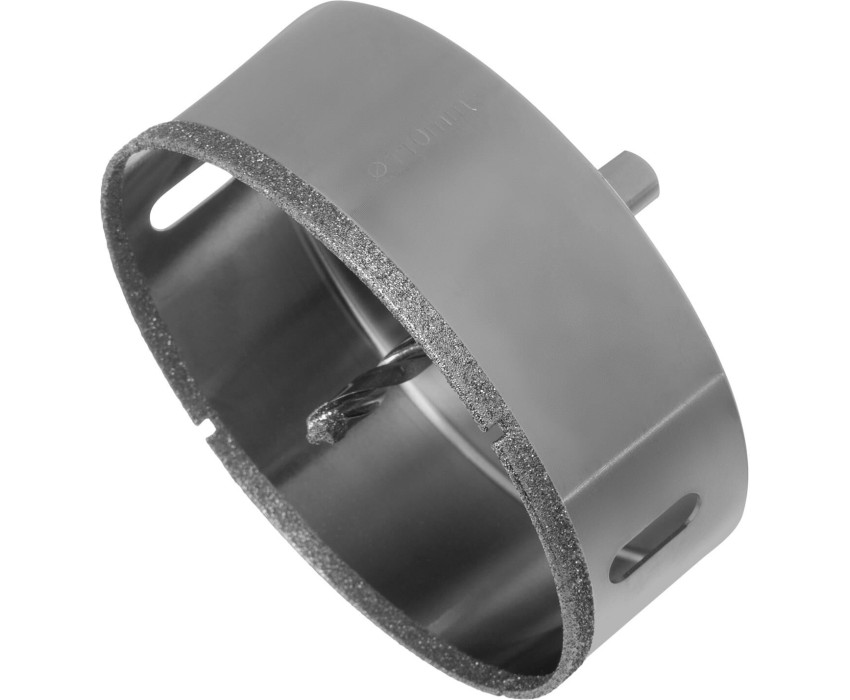 Универсальное алмазное сверло по керамограниту Matrix 726923 размером 110 х 67 мм, с 3-гранным хвостовиком, применяется для получения отверстий в стекле, плитке, кафеле. За счет высокой концентрации алмазов в режущем слое оно легко справляется со сверлением керамогранита. Сверло рассчитано на профессиональное использование с дрелями и шуруповертами. Водяное охлаждение в процессе работы значительно повышает срок службы оснастки. Преимущества Высокий ресурс — сверло с усиленным корпусом и увеличенным алмазным слоем долго сохраняет рабочие свойства. Антикоррозионное покрытие — при мокром сверлении на сверле не образуется ржавчина. Легкое засверливание — благодаря центрирующему сверлу коронку не уводит в сторону. Надежная фиксация — трехгранный хвостовик не прокручивается в патроне дрели или шуруповерта.