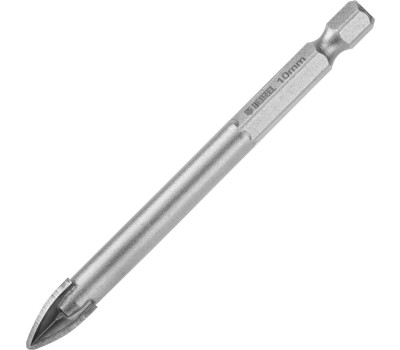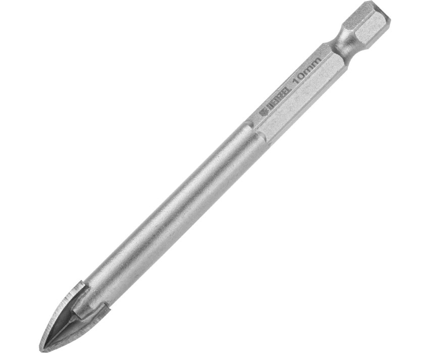DENZEL Сверло по керамической плитке 10 мм, крестовая пластина, шестигранный хвостовик// 728093