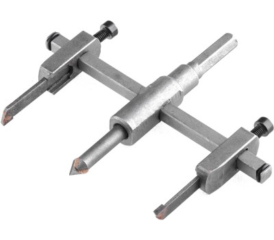 Сверло Matrix «Балеринка» 72821, регулируемое в диапазоне 30-130 мм, предназначено для получения отверстий толщиной 4-12 мм в керамике, кафеле, кирпиче, плитке и других материалах. Устанавливается в патрон дрели. Используется как начинающими мастерами, так и профессионалами. Преимущества Высокий показатель прочности — сверло изготовлено из стали 45. Эффективная работа — режущими элементами являются твердосплавные пластины ВК8. Надежная фиксация — шестигранный хвостовик не проворачивается в патроне. Удобная регулировка диаметра реза — конструкцией предусмотрена возможность быстрого изменения положения резцов.