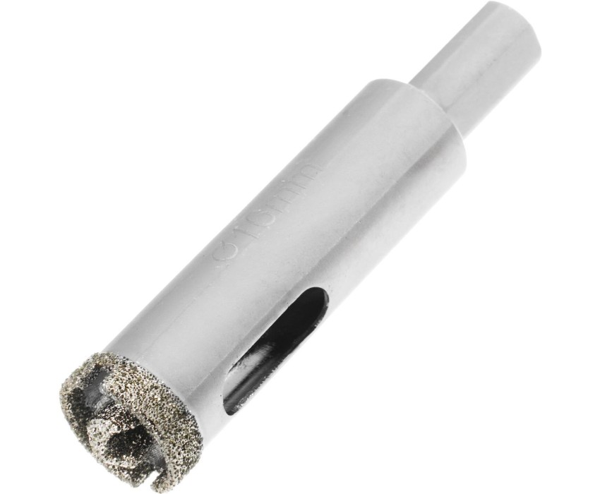 Универсальное алмазное сверло по керамограниту Matrix 726163 размером 16 х 67 мм, с 3-гранным хвостовиком, применяется для получения отверстий в стекле, плитке, кафеле. За счет высокой концентрации алмазов в режущем слое оно легко справляется со сверлением керамогранита. Сверло рассчитано на профессиональное использование с дрелями и шуруповертами. Водяное охлаждение в процессе работы значительно повышает срок службы оснастки. Преимущества Высокий ресурс — сверло с усиленным корпусом и увеличенным алмазным слоем долго сохраняет рабочие свойства. Антикоррозионное покрытие — при мокром сверлении на сверле не образуется ржавчина. Легкое засверливание — благодаря центрирующему сверлу коронку не уводит в сторону. Надежная фиксация — трехгранный хвостовик не прокручивается в патроне дрели или шуруповерта.