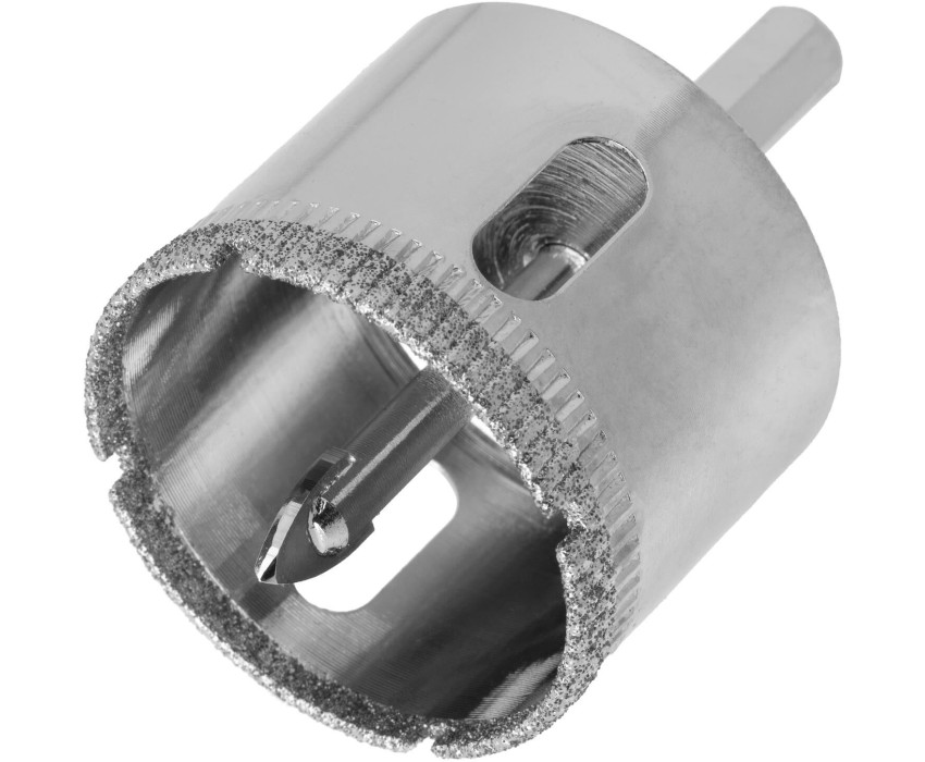 Сверло Сибртех 72719 размером 38 х 55 м, с шестигранным хвостовиком и центрирующим сверлом, позволяет получать отверстия в керамической плитке и стекле. Его устанавливают на дрель или шуруповерт, рекомендуемый диапазон рабочих оборотов 350-700 об/мин. Оснастка используется при выполнении бытовых ремонтных и отделочных работ. После заглубления алмазной коронки на 1-2 мм рекомендуется снять центрирующее сверло, это поможет увеличить его ресурс. Применение водяного охлаждения значительно повышает срок службы оснастки. Преимущества Устойчивость к нагрузкам — коронка изготовлена из среднеуглеродистой стали 45. Точное позиционирование — центрирующее сверло быстро заглубляется в материал, не давая коронке сдвигаться во время сверления. Съемный центровик — при необходимости его можно заменить на сверло Сибртех 72709. Коррозионная стойкость — оснастка защищена специальным покрытием. Надежная фиксация — благодаря шестигранному хвостовику сверло не проворачивается в патроне электроинструмента.