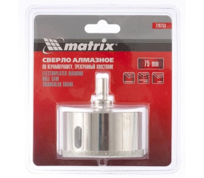 MATRIX Сверло алмазное по керамограниту, 75 х 67 мм, трехгранный хвостовик 726753