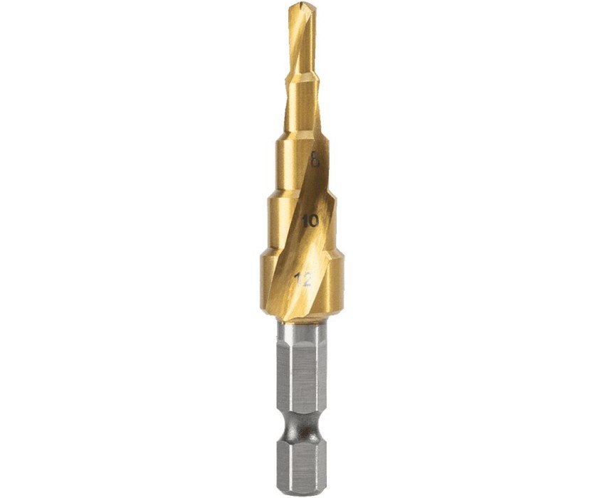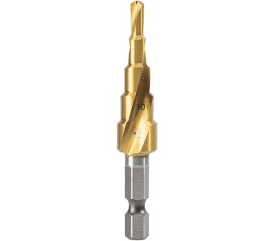 DELI Оснастка Сверло ступенчатое по металлу DH-JTZ012-E2 (4-12мм, HSS M2, спиральная канавка, шестигранный хвостовик)