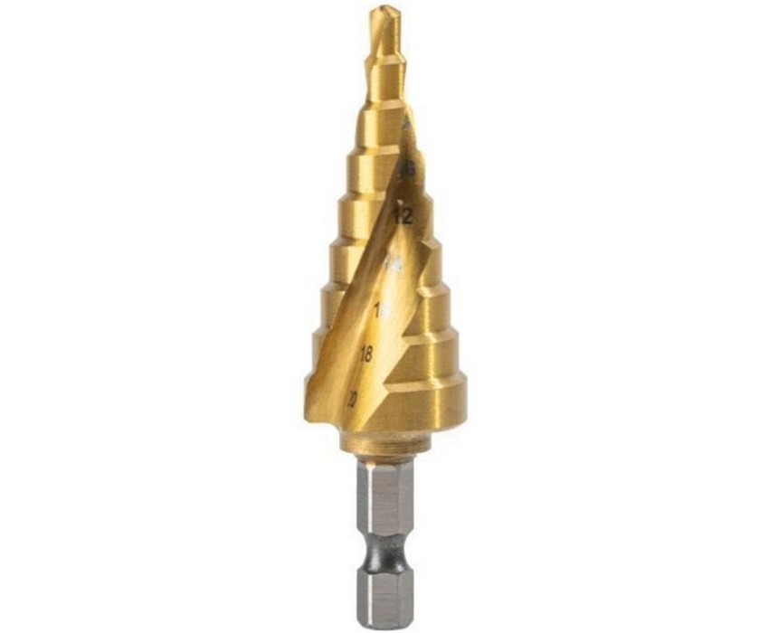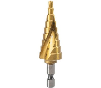DELI Оснастка Сверло ступенчатое по металлу DH-JTZ020-E1 (4-20мм, HSS 4341 спиральная канавка, шестигранный хвостовик)