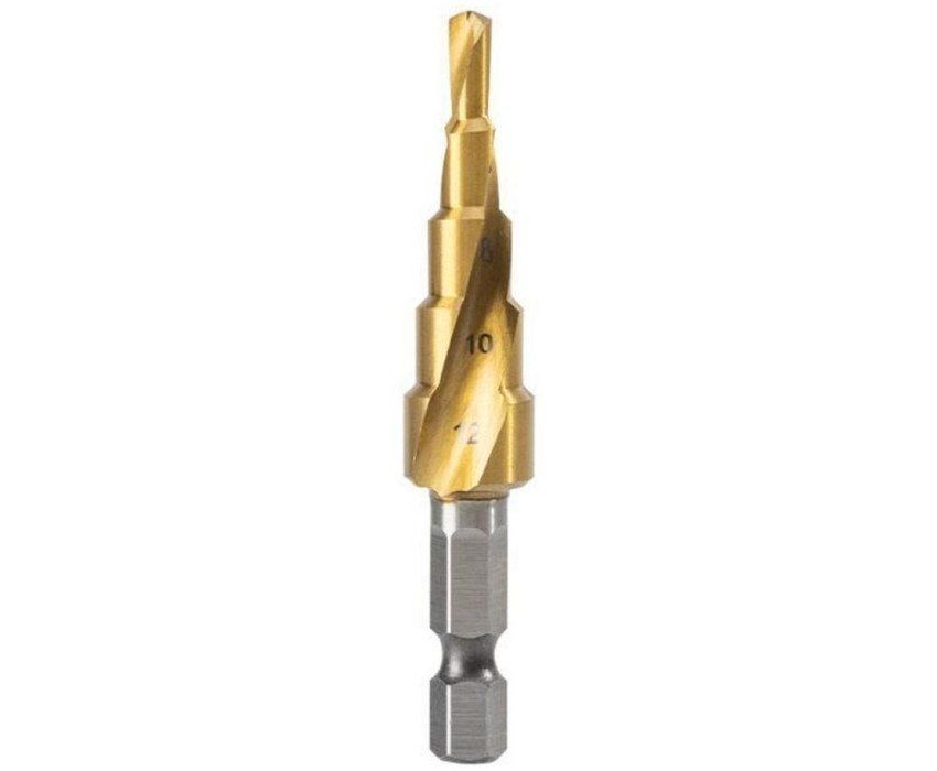DELI Оснастка Сверло ступенчатое по металлу DH-JTZ012-E1 (4-12мм, HSS 4341 спиральная канавка, шестигранный хвостовик)