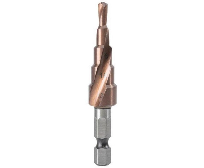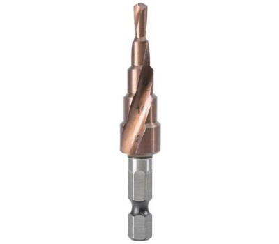 DELI Оснастка Сверло ступенчатое по металлу DH-JTZ012-E3 (4-12мм, HSS M35, спиральная канавка, шестигранный хвостовик)