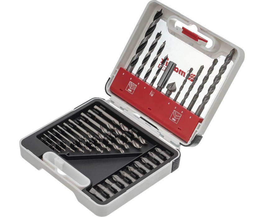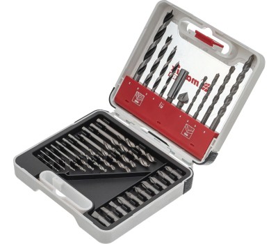 Комбинированный набор Matrix PRO 725631 — универсальное решение для мастеров, т. к. он содержит 31 предмет: отверточные биты (10 штук) и адаптер к ним, зенковку и сверла по дереву 4-8 мм, сверла по бетону 4-8 мм и сверла по металлу 1-6 мм. Оснастка подходит как для бытового использования, так и решения профессиональных задач. Преимущества Прочность и долговечность — адаптер выполнен из углеродистой стали, биты — из хромованадиевой стали, сверла по металлу — из стали Р6М5, а сверла по дереву — из стали 45. Высокий ресурс — сверла по бетону изготовлены из стали 40Х и имеют твердосплавную пластину ВК8. Решение широкого спектра задач — в набор входит оснастка наиболее распространенных размеров. Быстрое переключение между задачами — магнитный адаптер упрощает замену бит. Универсальность — цилиндрические хвостовики сверл совместимы со всеми типами патронов. Удобное хранение и транспортировка — набор поставляется в пластиковом кейсе с ручкой и защелкой.
