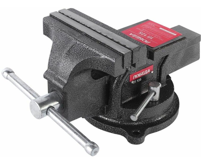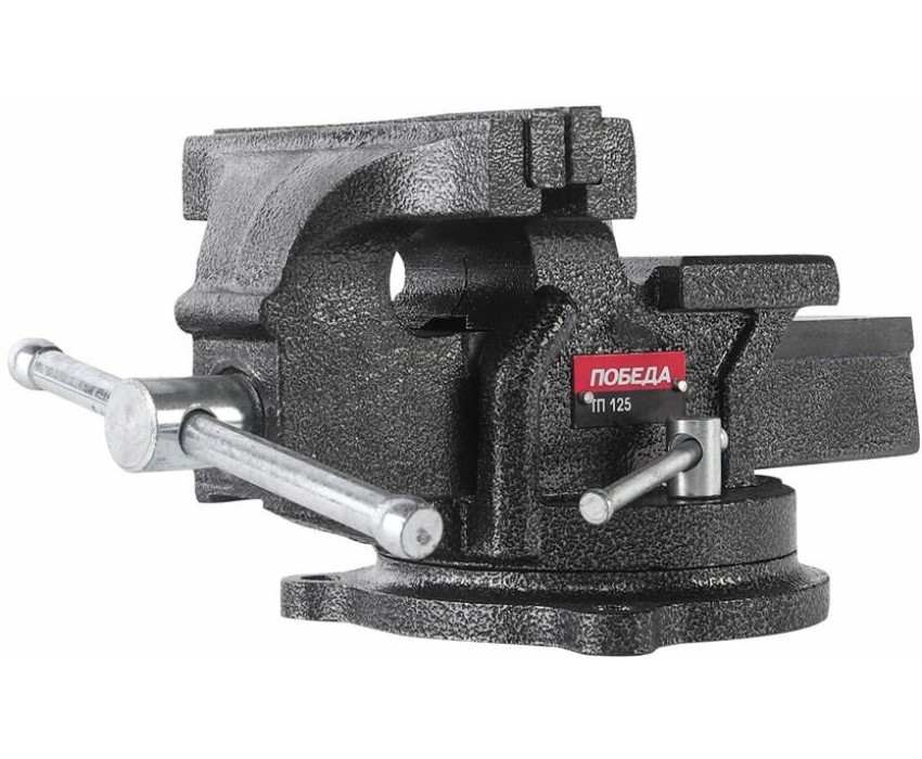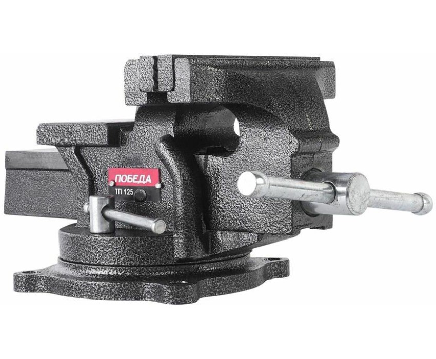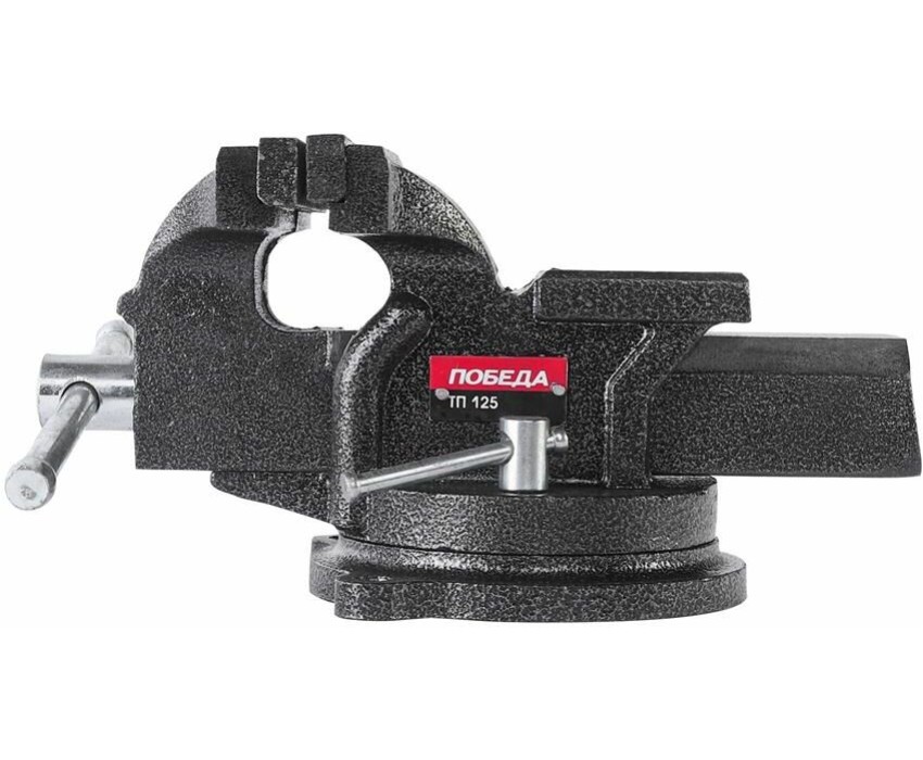 Ход подвижной губки: 85 мм • Ширина губок: 125 мм • Материал губок: сталь • Место установки: рабочий стол • Наковальня: есть • Поворотный механизм основания: 360 °С • Предельное усилие затяжки: 2550 кгс • Способ крепления: винты/болты • Материал корпуса: чугун • Габариты: 19.5х27х15.5 см • Вес брутто упаковки: 5.5 кг • Объем упаковки: 0,008161 куб. м • Комплект поставки: тиски, упаковка