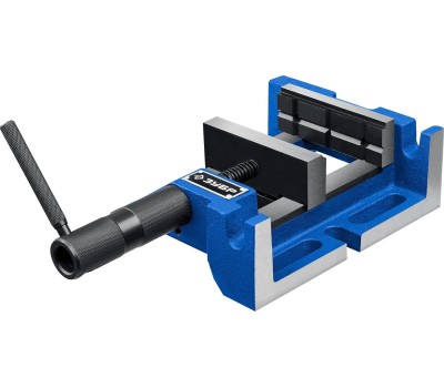 Высокоточный инструмент для надёжного фиксирования деталей во время сверлильных работ Преимущества Возможность установки тисков на две дополнительные поверхности Корпус из высококачественого ковкого чугуна с шаровидным графитом Сменные губки изготовлены из высококачественной стали и закалены до твёрдости 45-50 HRC Призматические пазы неподвижной губки позволяют зажимать горизонтально и вертикально цилиндрические заготовки Удобная рукоятка для быстрого перемещения с возможностью поджима воротком Использование Предназначен для закрепления деталей ипри выполнении различных видов точных слесарных работ, механических и ювелирных работ.