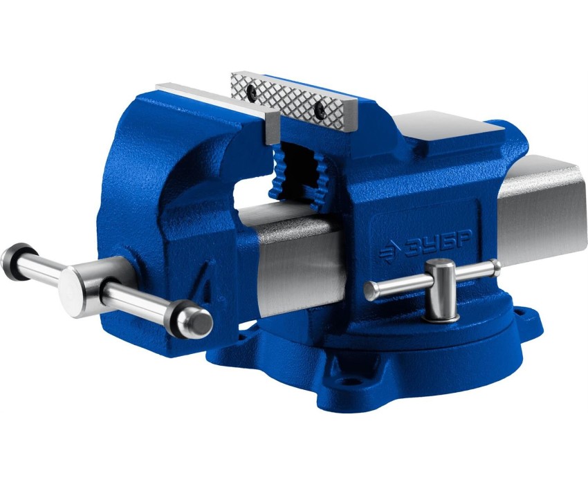 Профессиональный особопрочный высокоточный инструмент для надёжной фиксации деталей и заготовок в промышленных условиях Преимущества Износостойкий ковкий чугун с шаровидным графитом Сменные губки изготовлены из высококачественной инструментальной стали и закалены до твердости 45-53HRC и отшлифованы Прецизионная точность хода благодаря шлифовке направляющего блока с 3х сторон Поворотное основание позволяет перемещать корпус тисков в горизонтальной плоскости на угол от 0 до 360 градусов Усилие зажима 3500 кг/см2 Встроенный зажим для труб На рабочую поверхность губок нанесены рифления для надежного и безопасного крепления деталей Увеличенная наковальня на корпусе тисков для выполнения слесарных работ Фиксация тисков на столе при помощи винтов и гаек в специальные отверстия в основании Использование Для зажима различных предметов или их отдельных составных элементов