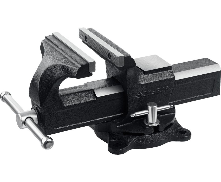 Тиски слесарные ЗУБР МАСТЕР изготовлены высококачественного чугуна, соответствуют самым высоким техническим требованиям. Обеспечивают длительную и качественную работу. Преимущества Износостойкий ковкий чугун с шаровидным графитом Закаленыe стальные губки Рельефная поверхность губок для надежного и безопасного крепления деталей Поворотное основание позволяет перемещать корпус тисков в горизонтальной плоскости на угол от 0 до 360 градусов Надежная конструкция Увеличенная наковальня для мелких слесарных работ 3 отверстия в основании для надежного крепления к верстаку Использование Для зажима различных предметов или их отдельных составных элементов