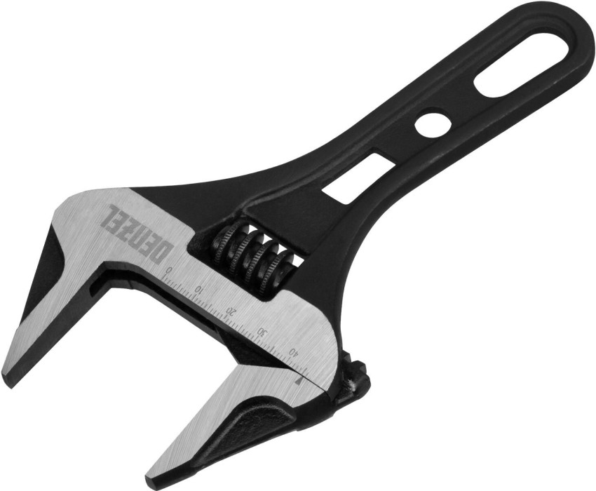 Ключ разводной кованый Denzel 15754 длиной 185 мм, из стали CrV, с укороченной рукояткой и увеличенным раскрытием губок, используется для монтажа и демонтажа крепежных элементов диаметром до 46 мм. Благодаря тонким губкам и укороченной рукоятке удобен для работы в труднодоступных местах. Имеет широкую область применения: сантехнические работы, мелкий бытовой ремонт, полупрофессиональная сфера и т. д. Преимущества Прочность и долговечность — ключ изготовлен из закаленной хромованадиевой стали методом ковки. Увеличенный ресурс — кованая конструкция усилена дополнительными ребрами жесткости на рукоятке. Защита от разрушения — фосфатированная поверхность инструмента не подвержена коррозии. Удобная эксплуатация — метрическая линейка на ключе помогает выставить нужный размах зева. Возможность подвесного хранения — в рукоятке предусмотрено специальное отверстие.