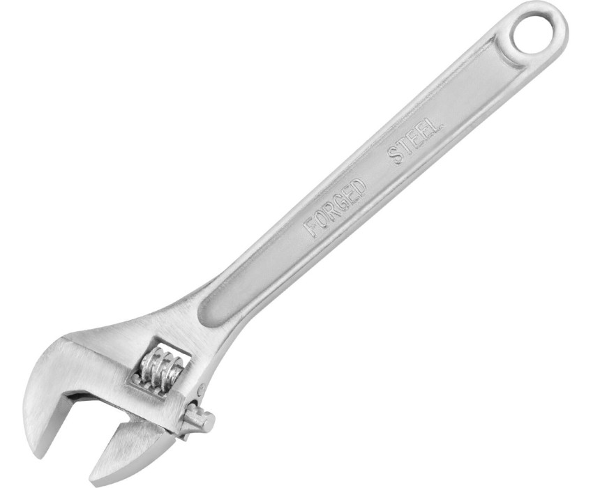 Хромированный разводной ключ Sparta 155405 длиной 375 мм — инструмент для выполнения мелких ремонтных работ. Регулировка размера зева позволяет работать с различными крепежами, в том числе нестандартных размеров. Ключ пригодится слесарям, сантехникам, автомеханикам и начинающим мастерам. Преимущества Долгий срок службы — ключ выполнен из инструментальной углеродистой стали 45 и прошел селективную закалку. Антикоррозийная защита — хромовое покрытие предохраняет червячный винтовой механизм от воздействия влаги. Точный захват деталей — на ключ нанесена градуировка, а на подвижную губку — точечная риска.