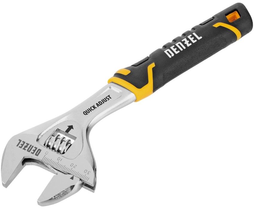 DENZEL Ключ разводной, 200 мм (раскрытие до 33 мм), CrV, с быстрым сбросом, кованый, TPR рукоятка 15742