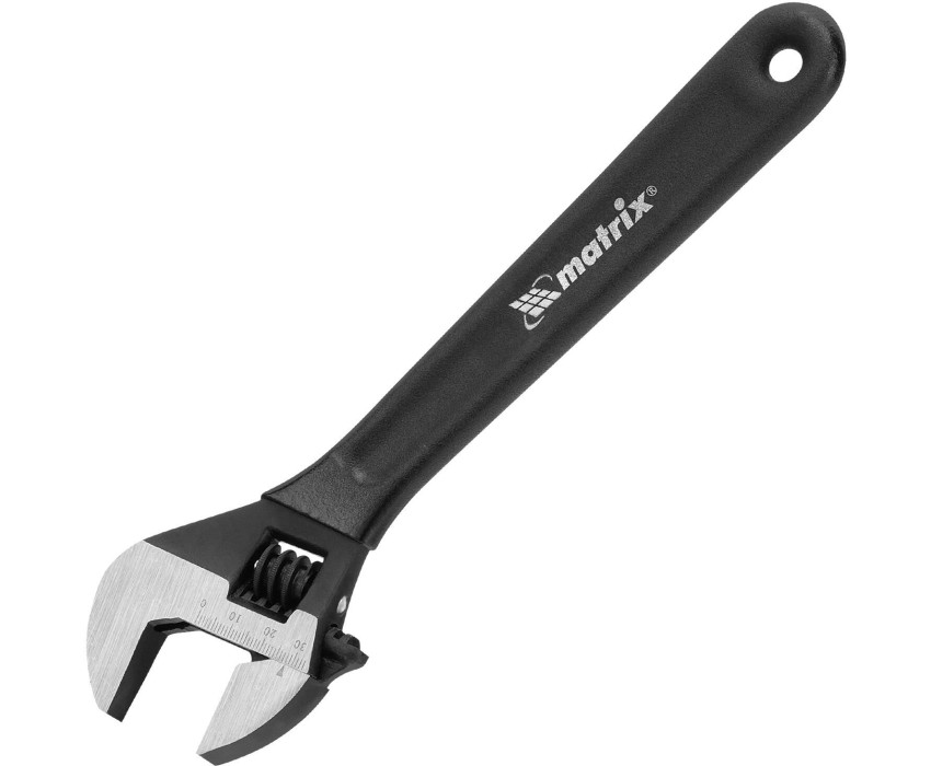 Разводной ключ Matrix 15505 длиной 250 мм используется для монтажа и демонтажа крепежных элементов. Заменяет собой целый комплект обычных гаечных ключей. Губки можно разводить на точно заданное расстояние, что позволяет захватывать детали различного размера. Разводной ключ пригодится для проведения слесарных, сантехнических, ремонтных работ. Преимущества Прочность — ключ изготовлен из высококачественной углеродистой стали 45 и прошел селективную закалку. Коррозионная стойкость — фосфатное покрытие защищает червячный винтовой механизм от воздействия влаги. Точность выполняемых работ — на губках имеется градуировка и точечная риска. Эргономичность — обливная рукоятка удобно ложится в руку и имеет отверстие для подвесного хранения.
