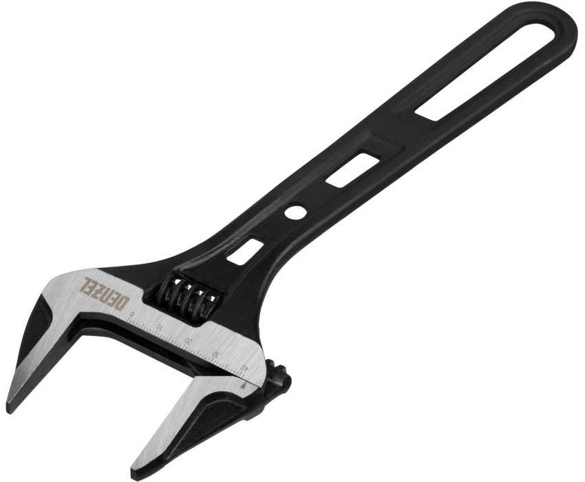 Ключ разводной кованый Denzel 15749 длиной 250 мм, из стали CrV, используется для монтажа и демонтажа крепежных элементов диаметром до 41 мм. Благодаря тонким губкам удобен для работы в труднодоступных местах. Имеет широкую область применения: сантехнические работы, мелкий бытовой ремонт, полупрофессиональная сфера и т. д. Преимущества Прочность и долговечность — ключ изготовлен из закаленной хромованадиевой стали методом ковки. Увеличенный ресурс — кованая конструкция усилена дополнительными ребрами жесткости на рукоятке. Защита от разрушения — фосфатированная поверхность инструмента не подвержена коррозии. Удобная эксплуатация — метрическая линейка на ключе помогает выставить нужный размах зева. Возможность подвесного хранения — в рукоятке предусмотрено специальное отверстие.