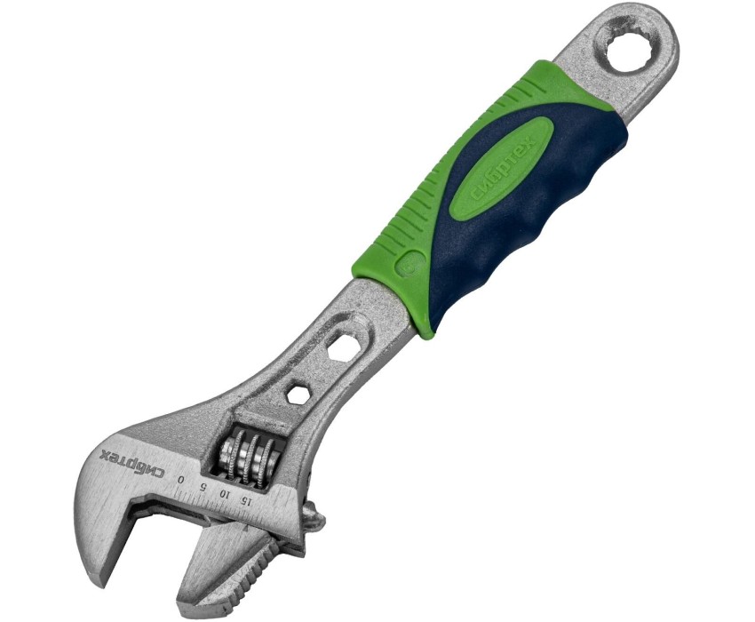 Разводной ключ Сибртех 15597 длиной 150 мм, с переставной губкой и двухкомпонентной рукояткой, предназначен для выполнения монтажных работ. Позволяет справляться с болтами разного размера и способен заменить целый арсенал гаечных ключей. Переставная губка с зазубринами позволяет использовать ключ для работы предметами без специального профиля, например, трубами. Преимущества Прочность и долговечность — ключ изготовлен из закаленной легированной стали, для надежной защиты от коррозии на инструмент нанесено никелевое покрытие. Функциональность — миллиметровая шкала и точечная риска позволяют разводить губки на точно заданное расстояние. Комфортная работа — двухкомпонентная рукоятка с рифлением и подпальцевыми выемками не выскальзывает из ладони. Малый вес 0,18 кг — нагрузка на руку снижена, что позволяет долго работать без усталости.