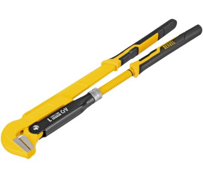 Цельнокованый трубный рычажный ключ №2 Denzel 15647 из стали CrV, тип «L», используется для захвата и вращения труб и фитингов диаметром 1,5″ без специальных граней. L-образная форма оптимальна для удержания плоских деталей. Рычажный механизм обеспечивает высокое прижимное усилие, повышая эффективность работы. Усиленная конструкция выдерживает интенсивные нагрузки и позволяет применять его как в быту, так и в профессиональной сфере — в автомастерских, ЖКХ и т.д. Преимущества Качественное исполнение — ключ изготовлен из прочной хромованадиевой стали методом ковки, поэтому устойчив к нагрузкам. Долговечность — порошковое покрытие защищает инструмент от коррозии. Высокий ресурс — рабочие губки прошли закалку высокочастотными токами до твердости 50-55 HRC, что позволяет работать с применением значительных усилий. Надежный самоблокируемый захват — зубья наклонены против направления вращения для эффективного решения поставленных задач. Удобная эксплуатация — стопорное кольцо на регулировочной гайке позволяет зафиксировать рабочие части в нужном положении для удобства работы. Эргономичность — двухкомпонентные рукоятки надежно ложатся в руку и позволяют длительное время работать без ощущения усталости.
