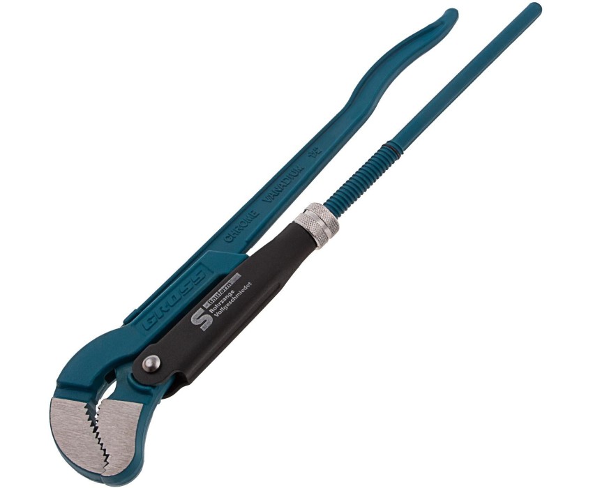 Цельнокованый трубный рычажный ключ Gross №2 15613 из стали CrV, тип «S», предназначен для захвата и вращения труб и соединительных деталей диаметром 1,5″. Ключ S-образной формы крепко захватывает плоские и объемные предметы, а также позволяет работать в труднодоступных местах. Рычажный механизм увеличивает прикладываемое усилие, что снижает усталость мастера. Инструмент выдерживает интенсивное использование, поэтому пригодится сотрудникам автосервиса, коммунальных служб, а также будет полезен в быту. Преимущества Долговечность — ключ выполнен из хромованадиевой стали, губки закалены высокочастотными токами до твердости 57-60 HRC. Продуманная конструкция — стопорное кольцо предотвращает случайное откручивание регулировочной гайки. Надежная фиксация деталей — зубья, наклоненные противоположную от направления вращения сторону, обеспечивают самоблокируемый захват. Устойчивость к воздействию влаги — порошковое покрытие защищает инструмент от коррозии.