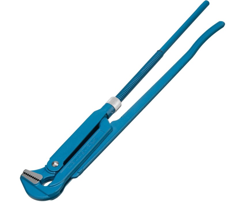 Кованый трубный рычажный ключ Сибртех №4 15762, тип «L», используется для захвата и вращения труб диаметром 3″, а также других деталей со специальным профилем и без него. Рычажный механизм увеличивает рабочее усилие, снижая нагрузку на руки мастера. Инструмент рассчитан на бытовое и профессиональное применение. Преимущества Прочность и долговечность — кованая конструкция из закаленной легированной стали устойчива к нагрузке кручения, губки закалены до твердости 48-52 HRC. Надежная фиксация — на регулировочном механизме с гайкой имеется стопорное кольцо. Прочный захват — зубья прогрессивной формы наклонены против направления вращения. Защита от коррозии — на инструмент нанесено порошковое покрытие.