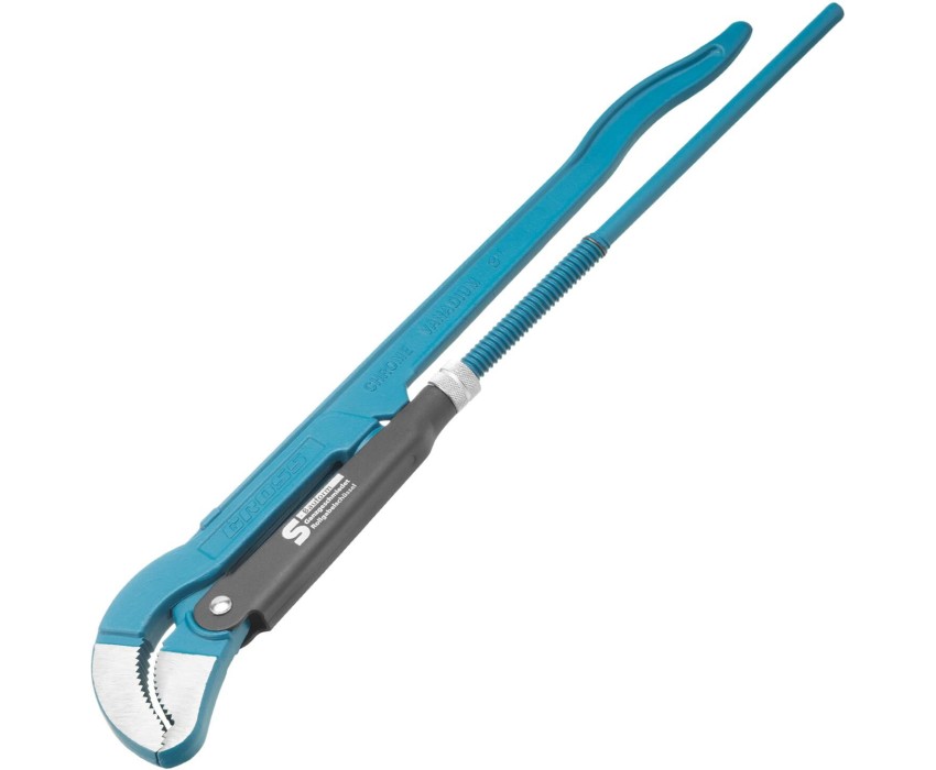Цельнокованый трубный рычажный ключ Gross №4 15616 из стали CrV, тип «S», предназначен для захвата и вращения труб и соединительных деталей диаметром 3″. Ключ S-образной формы крепко захватывает плоские и объемные предметы, а также позволяет работать в труднодоступных местах. Рычажный механизм увеличивает прикладываемое усилие, что снижает усталость мастера. Инструмент выдерживает интенсивное использование, поэтому пригодится сотрудникам автосервиса, коммунальных служб, а также будет полезен в быту. Преимущества Долговечность — ключ выполнен из хромованадиевой стали, губки закалены высокочастотными токами до твердости 57-60 HRC. Продуманная конструкция — стопорное кольцо предотвращает случайное откручивание регулировочной гайки. Надежная фиксация деталей — зубья, наклоненные противоположную от направления вращения сторону, обеспечивают самоблокируемый захват. Устойчивость к воздействию влаги — порошковое покрытие защищает инструмент от коррозии.