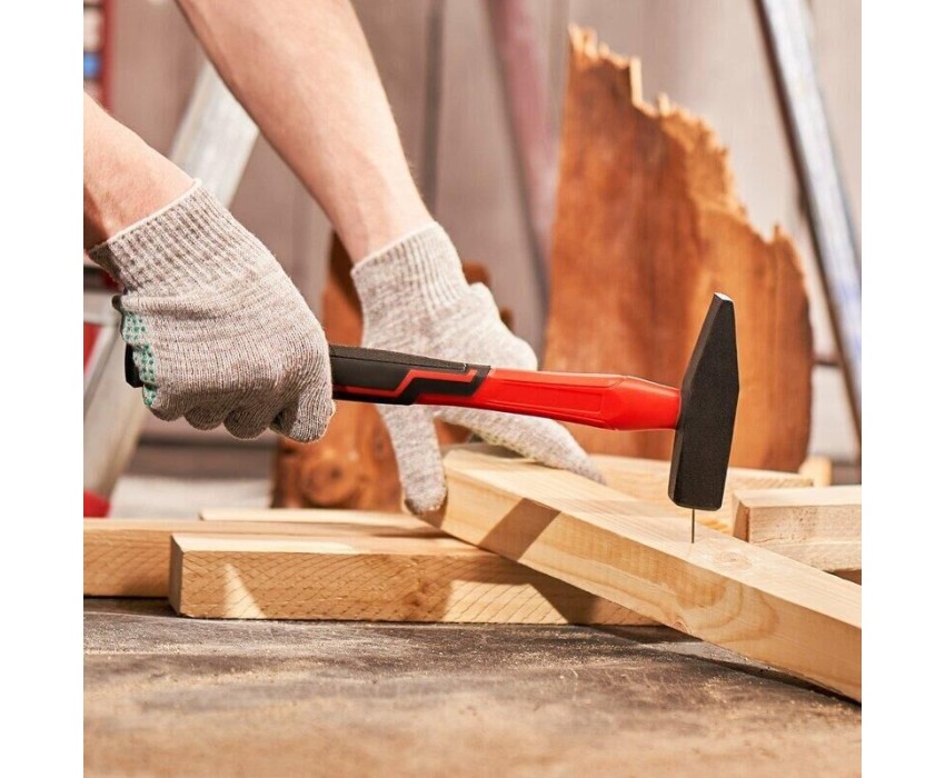 Слесарный молоток REXANT с фибергласовой рукояткой подходит для проведения ремонтных, отделочных и строительных работ. Это самый распространенный вид молотка, который необходим в быту и для профессионального применения. Комбинированный боек покрыт черным лаком и надежно зафиксирован на рукоятке при помощи специального эпоксидного клея. Он изготовлен из стали марки 50, что позволяет выдерживать мощные удары и обеспечивать длительный срок службы инструмента. Фибергласовая обрезиненная рукоятка эффективно снижает колебания, возникающие при ударе. Головка молотка с селективной закалкой. Технические характеристики: Вес бойка: 500 г Тип: молоток слесарный Материал рукоятки: фиберглас, резина Форма бойка: квадрат Материал бойка: сталь